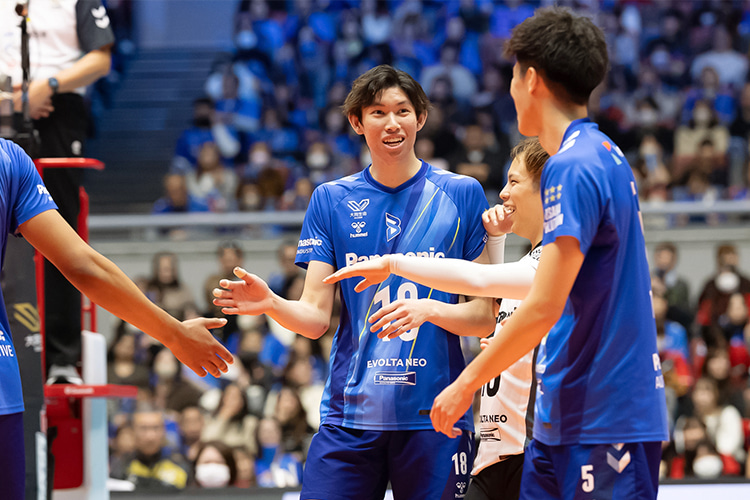 そんな中、ロペスが強烈なスパイクでチームを牽引すると、終盤に西川がブロック、西田のサービスエースで20-19の逆転に成功、西川が再度ブロックを決めていい形で連続得点を奪った。