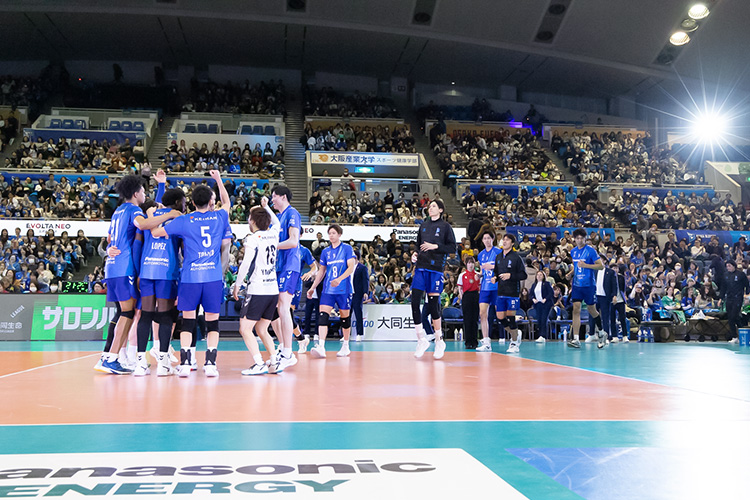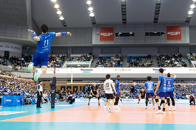 中盤も山本のディフェンスからブリザールが多彩な攻撃を仕掛けて安定したプレーを展開、エバデダンのブロックポイントや、20点以降もチームとしての積極的な姿勢を崩さず、西川のクイックなどで得点。