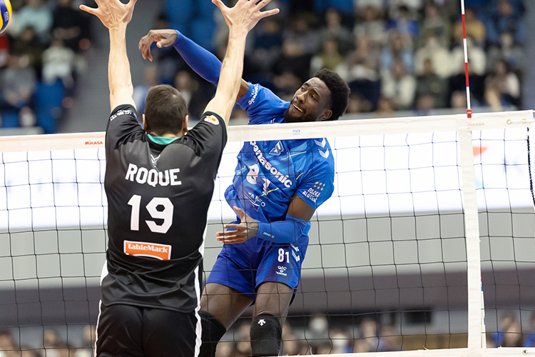 中盤もお互いに粘り、攻撃を仕掛ける激しい攻防が続いたが、ロペスがブロックやスパイクで躍動して14-9とした。