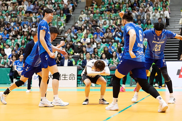 中盤に富田のサービスエースで1歩リードすると、そのまま連続得点を奪い9-7のリードに成功。終盤はサイドアウトを取りながら要所で得点を決めてリードを広げ、最後は途中出場のバグナスがしっかり得点、15-11でセットを奪いフルセットの激闘での勝利を掴んだ。
